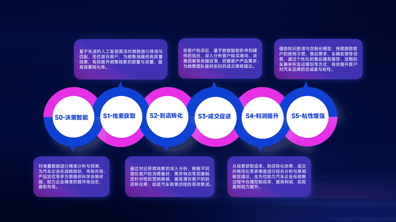 通过拓宽潜在客户来源、、、、优化线索分配并提高到店转化率,,,以增强销售效率。。。同时,,,,利用线索数据不断优化分析模型,,有效提升转化率,,,扩大营销影响力。。